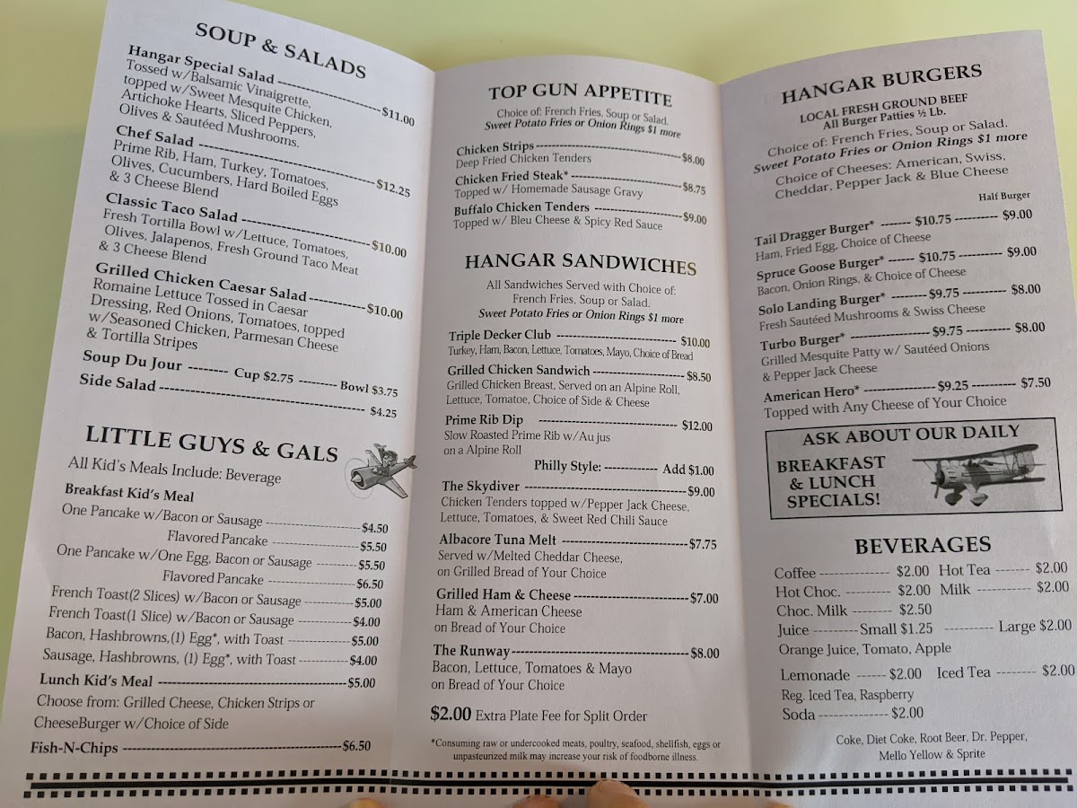 Welcome to Hangar Cafe - Hamilton, a charming dining spot located at the Ravalli County Airport. Here, the menu is a delightful mix that caters to all tastes, ensuring every visit is a memorable one. Start your day with their enticing breakfast options, like Chicken Fried Steak & Eggs or the indulgent Cookies and Cream Pancakes, as praised by customers. For a lighter fare, explore the selection of fresh salads including the Hangar Special Salad or the classic Grilled Chicken Caesar.